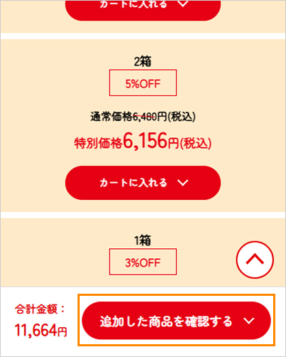 ④「追加した商品を確認する▽」をクリックすると選択された商品が、一覧で表示されます。