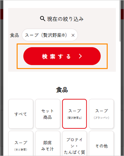 ②お探しの商品カテゴリーを選択して、「検索する>」をクリックしてください。商品が表示されます。