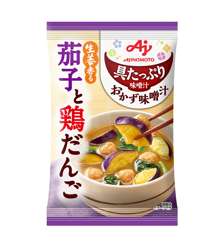 「具たっぷり味噌汁」〈おかず味噌汁〉茄子と鶏だんご >