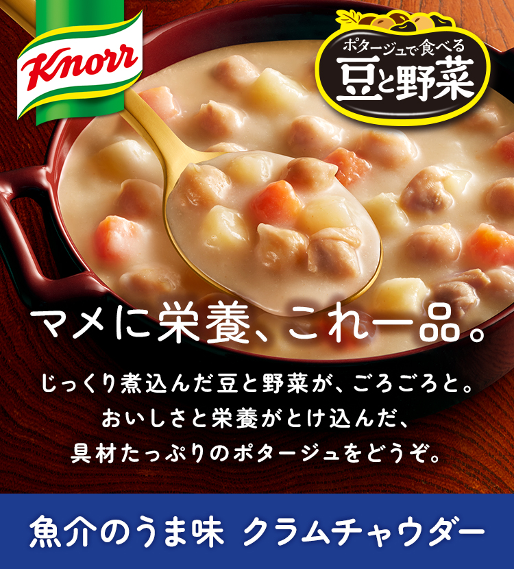 「クノール®ポタージュで食べる豆と野菜」 クラムチャウダー