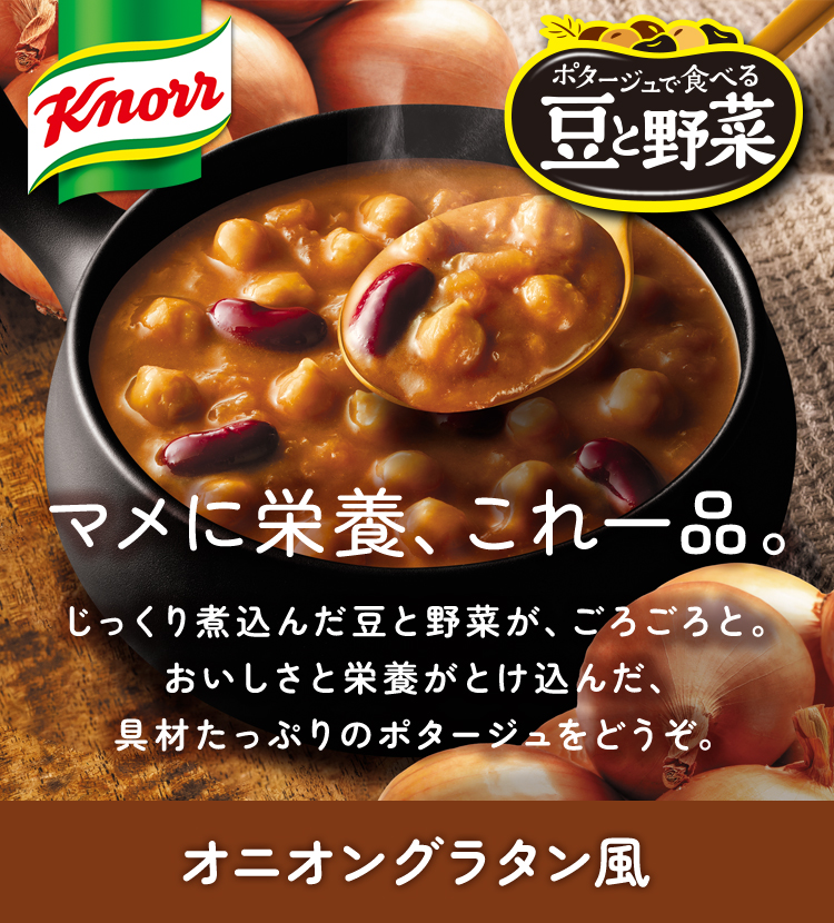 「クノール®ポタージュで食べる豆と野菜」 オニオングラタン風