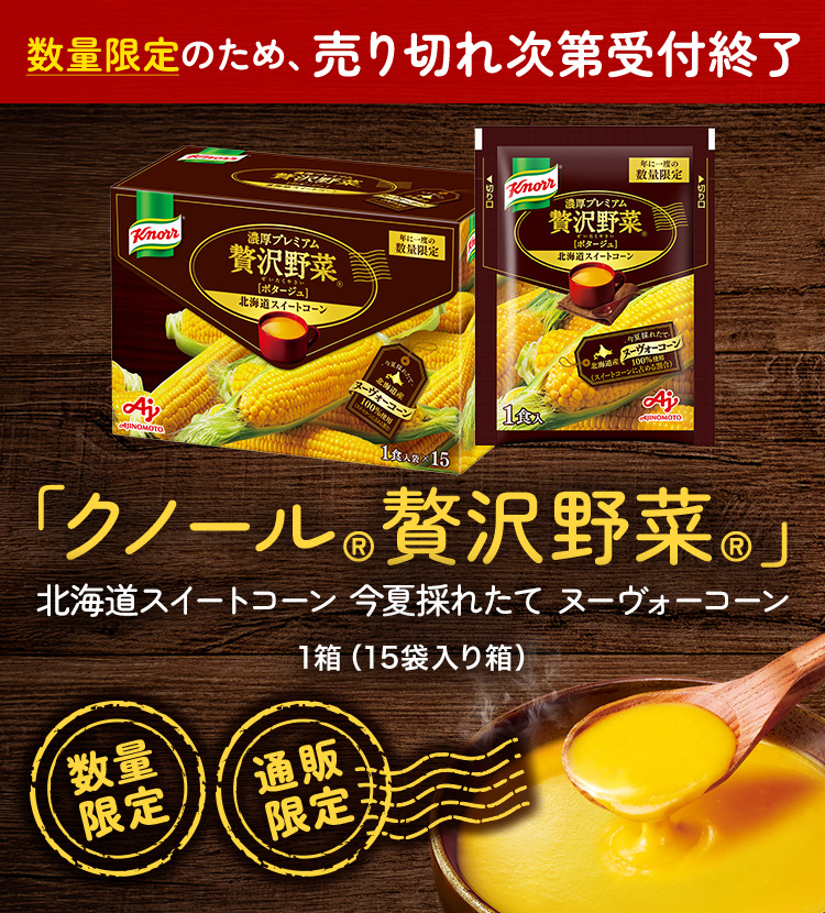 「クノール®贅沢野菜®」北海道スイートコーン 今夏採れたてヌーヴォーコーン