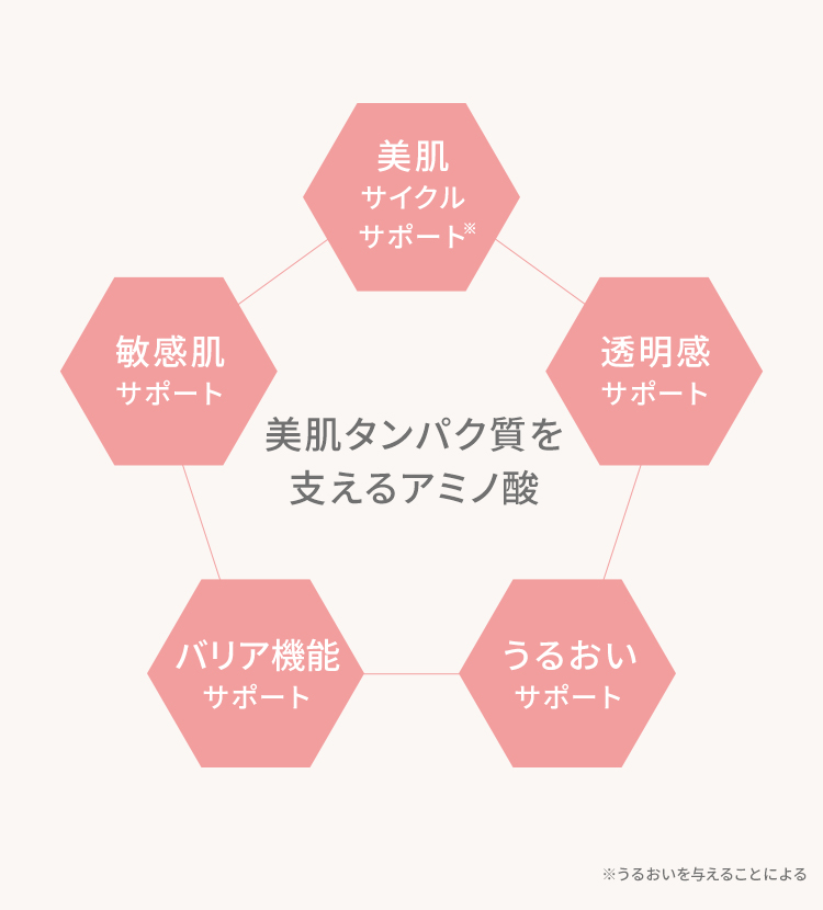 それは「美肌タンパク質」のもととなるアミノ酸で肌を保湿ケアすること。 年齢肌の原因が、肌にある「美肌タンパク質」の半減であることに着目しました。