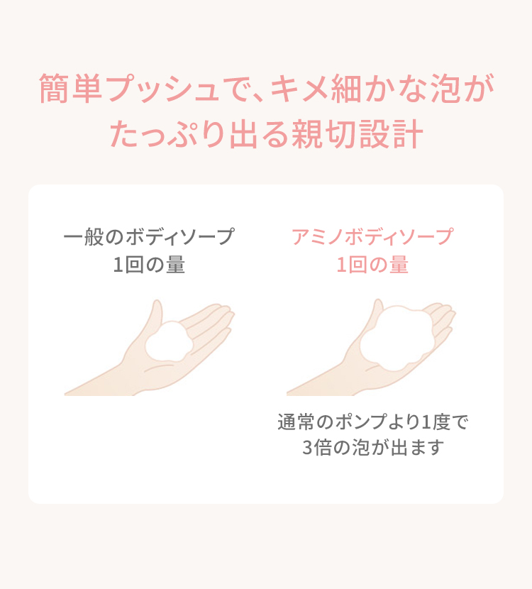 『アミノボディソープ』の容器を3~4プッシュし、泡をそのまま手のひらにとります。