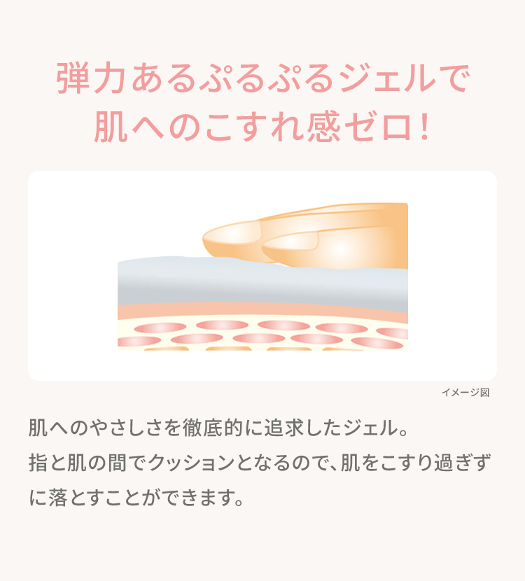 肌へのやさしさを徹底的に追求したジェル。指と肌の間でクッションとなるので、肌をこすり過ぎずに落とすことができます。