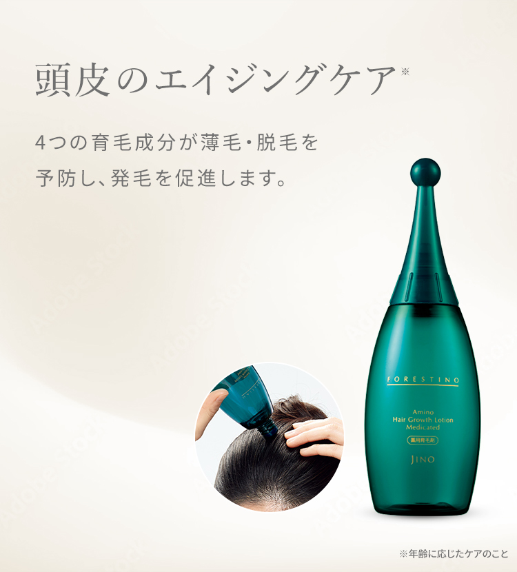 「グリチルリチン酸ジカリウム」、「l-メントール」、「トウガラシチンキ」、「センブリエキス」が育毛と発毛を促進。清涼感のある使い心地です。