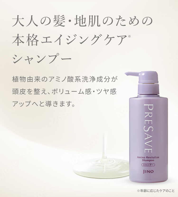 エイジングケア成分「頭皮ACアミノ※1」は、頭皮の酸化による皮膚トラブルに着目したアミノ酸で、髪にうるおいを与えます。また、毛髪のCMC(細胞膜複合体)のアミノ酸組成を参考につくられた美容成分「毛髪アミノ酸ミックス※2」が、乾いてパサついていた髪にツヤのある仕上がりをサポート。さらに、「プロリン」、「アルギニン」が、頭皮をやわらかくします。