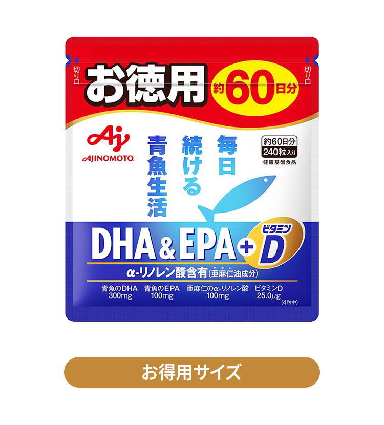 しんでいます。これからも、味の素(株)「DHA&EPA+ビタミンD」を長く続けていきたいと思います。
