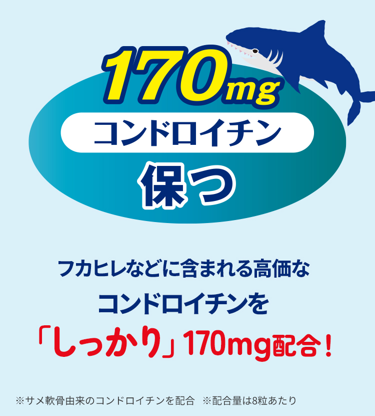 ※サメ軟骨由来のコンドロイチンを配合 ※配合量は8粒あたり