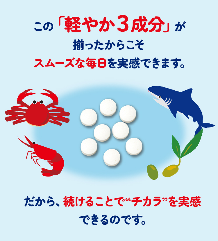 「軽やか3成分」が揃ったからこそスムーズな毎日を実感できます。