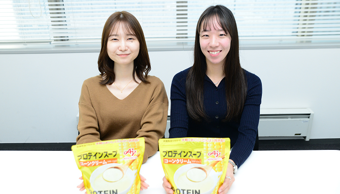 コーンスープは誰からも親しまれる味なので、お子さまでも飲みやすく、ご家族で共有できるのもよい点です。当社は、おいしいと感じる味づくりの設計に知見と技術をもっていますので、プロテイン特有の異風味もマスキング技術で違う風味を引き立たせることで、おいしさを実現できたと思います。